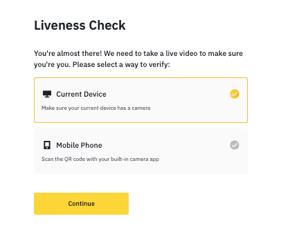 To ensure the authenticity of your submission, Binance will guide you through a quick liveness (face) verification.